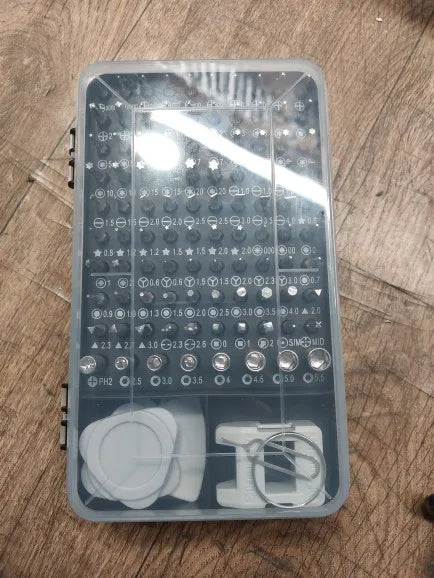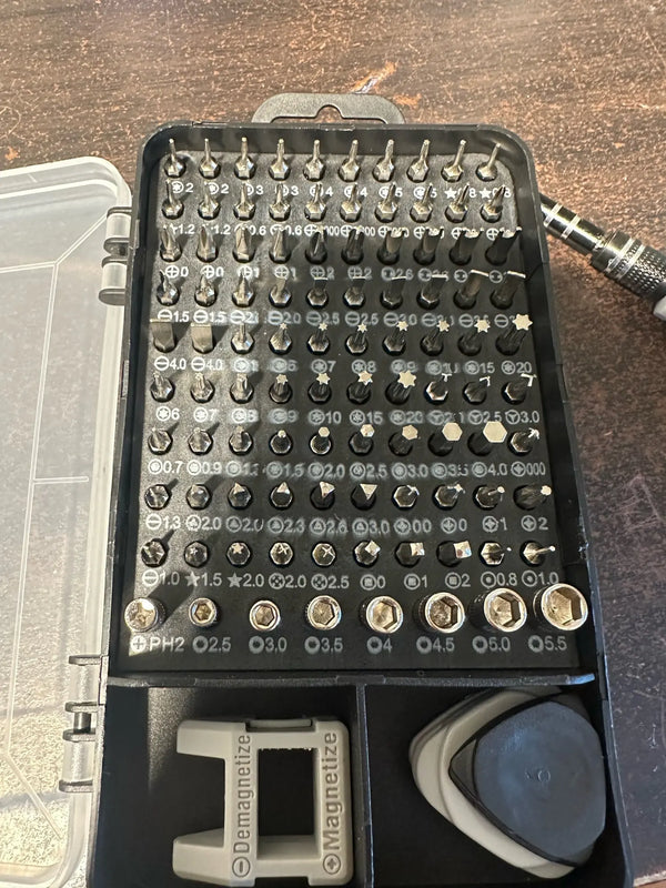 Incluye todas las puntas que necesitas — Phillips, Torx, Pentalobe, Hex, Tri-wing y más — organizadas para un acceso rápido. Sin adivinar. Sin forzar.